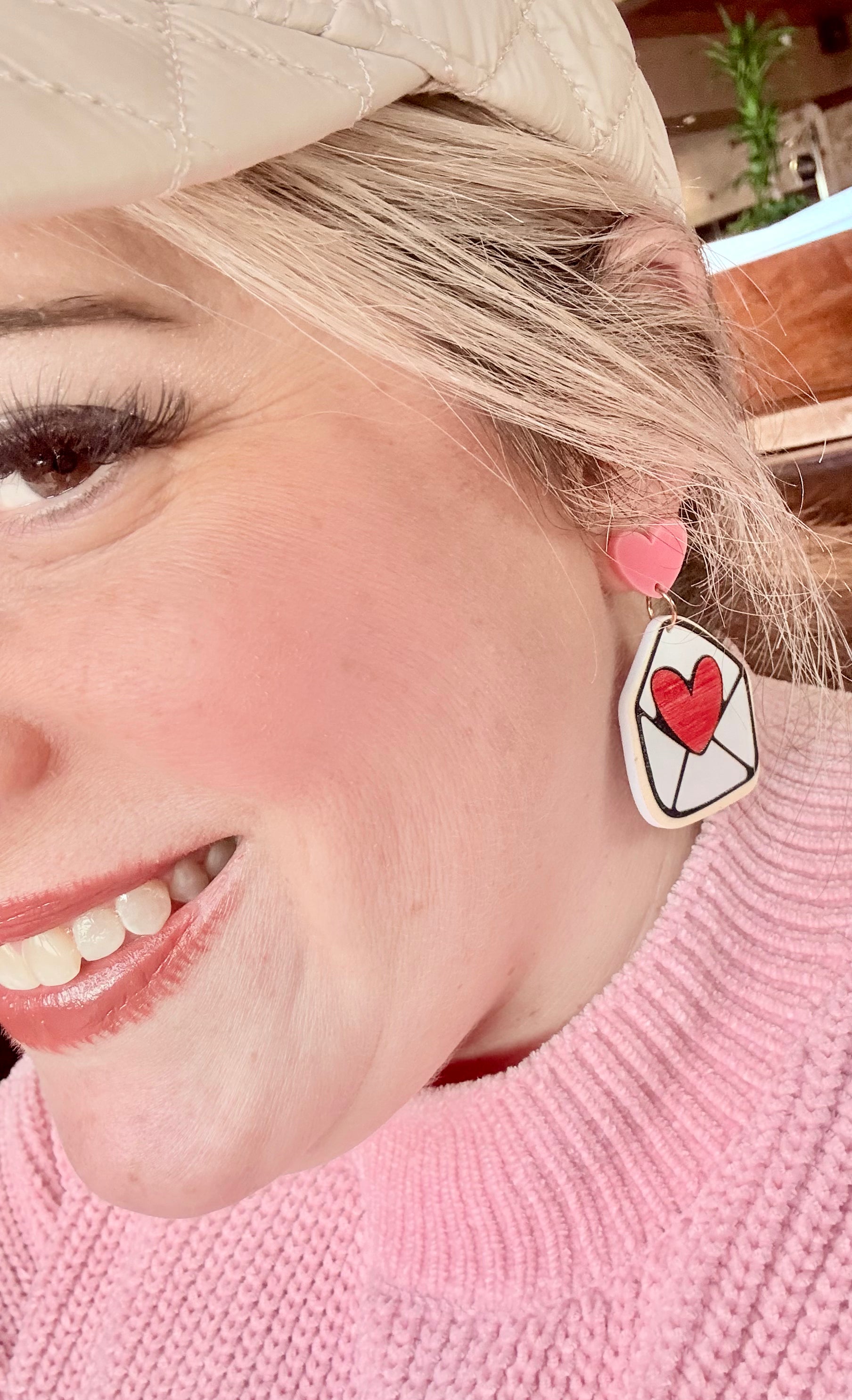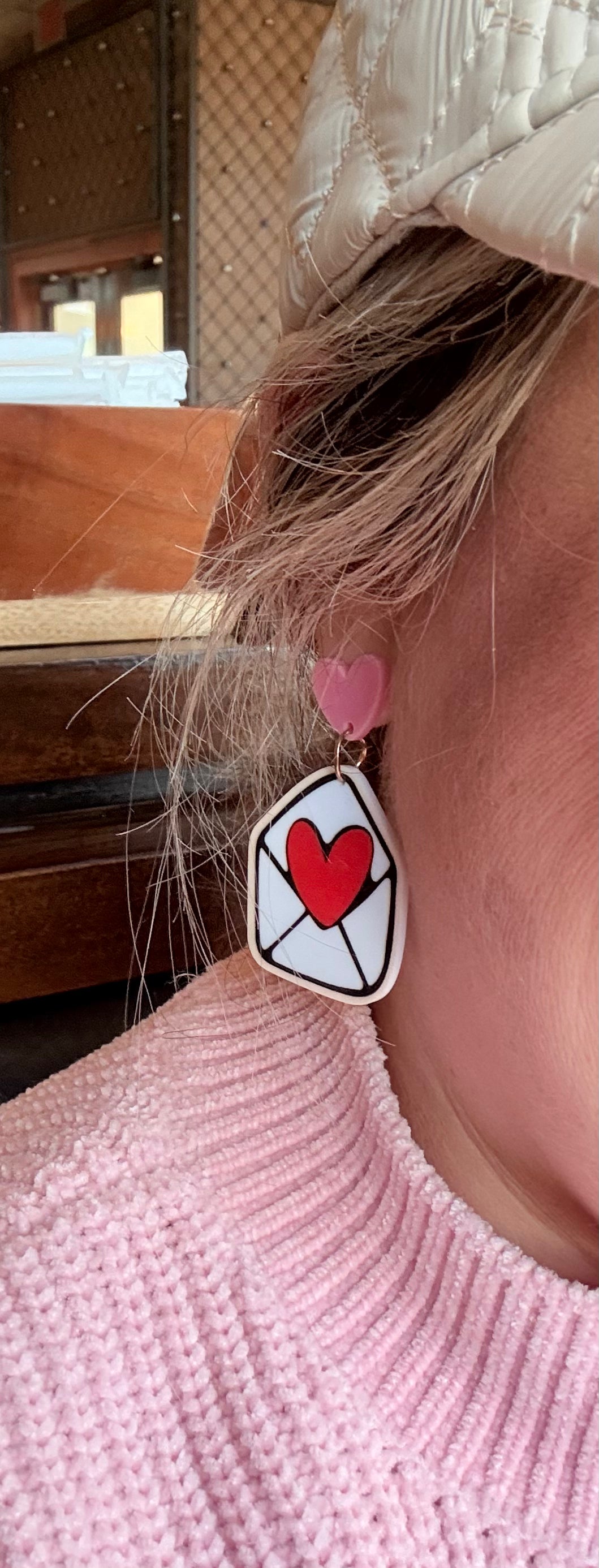"Send a message of love with our Love letters earrings. Made from sturdy acrylic, these earrings feature a 1.5 inch drop, making them a bold yet delicate accessory for any outfit. Show your love in style (and pun intended)!"